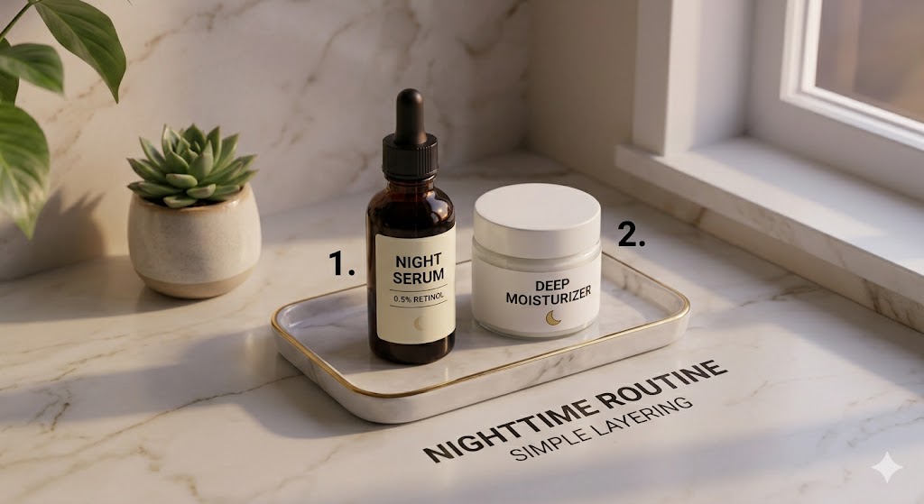 The best night anti aging skincare routine cleanses skin, uses repair-focused treatments, restores hydration, and supports the skin barrier while you sleep. Night care is where many corrective ingredients fit best.